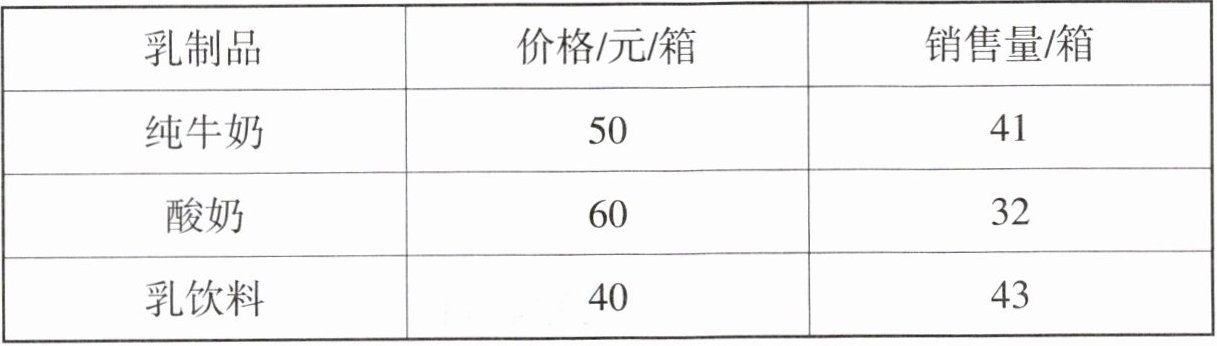 3. 下表是一家超市一天销售乳制品的情况。
