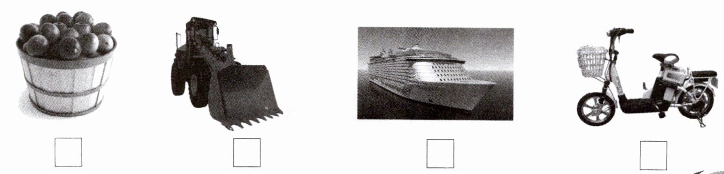 根据你的经验判断下列物品的质量。比1吨重的物体,在$□$里画“√”;比1吨轻的,在$□$里画“×”。