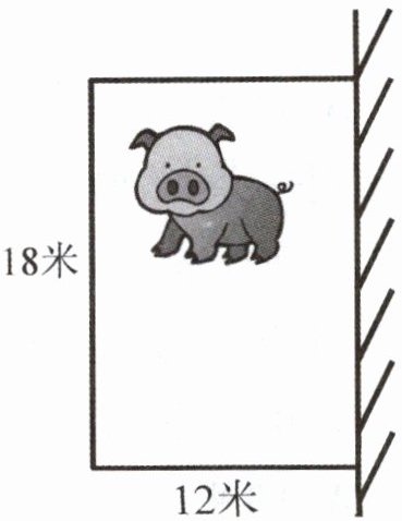 - 求猪圈面积:根据长方形面积公式$S = a× b$(其中$S$表示面积,$a$表示长,$b$表示宽),已知长$a = 18$米,宽$b = 12$米,所以面积$S=18×12 = 216$平方米。