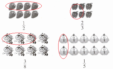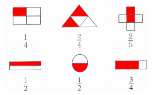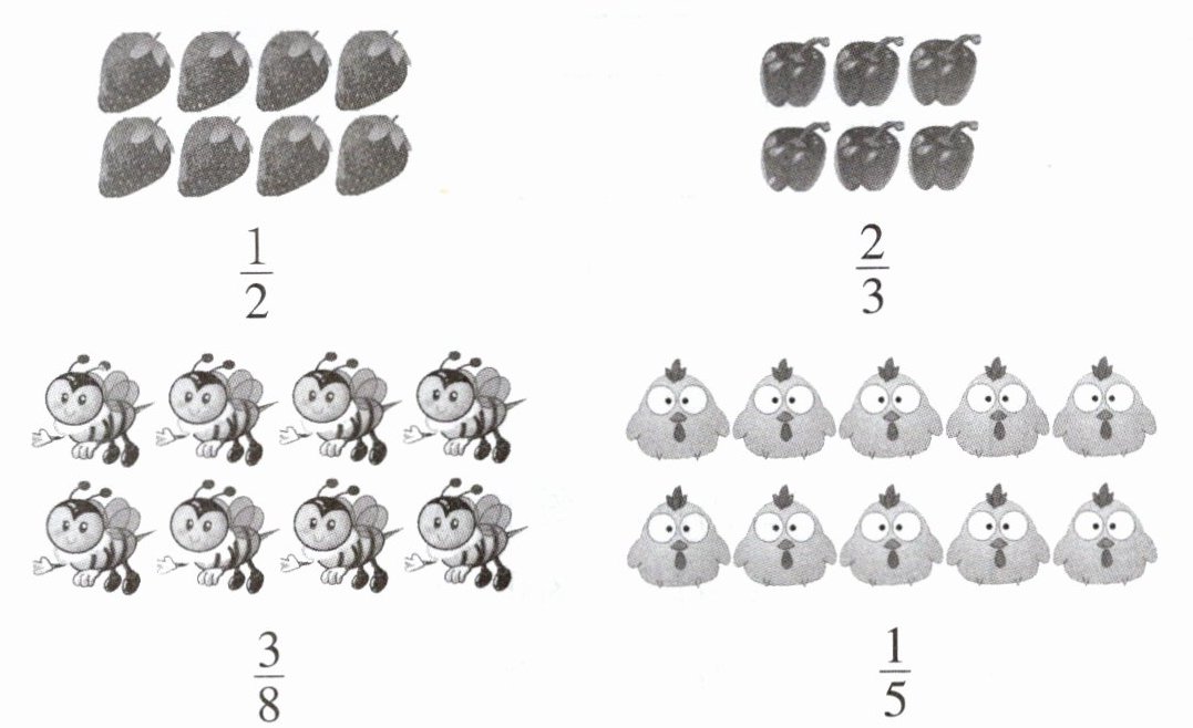 )3. 把一个木瓜平均分成2份,其中的1份是$\frac{1}{2}$。 (