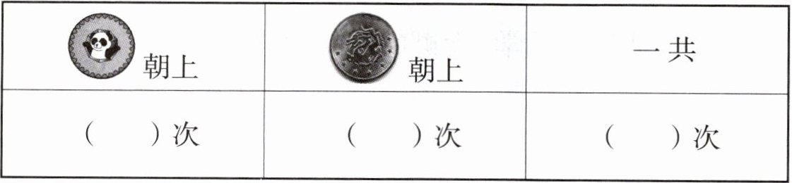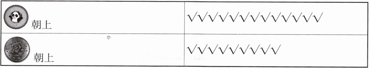 朝上的次数。根据记录填写了下面的表格。