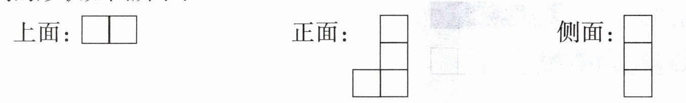 韩琳用4个相同的正方体拼成一个立体图形,这个立体图形从上面、正面、侧面看到的形状如图所示: