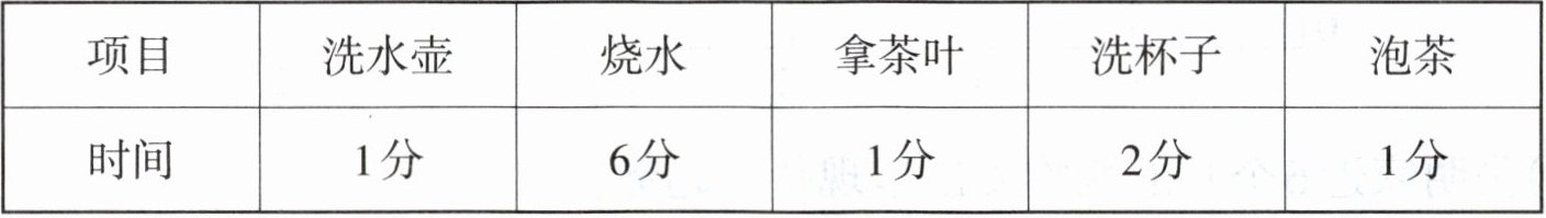 1.假期奶奶来了,小芳要为奶奶泡茶,要让奶奶在最短的时间内喝上茶水,小芳需要(