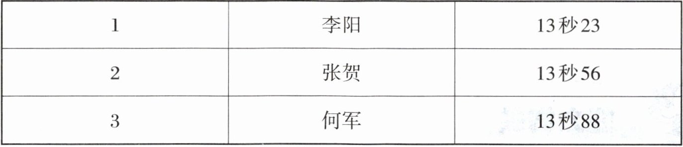2.学校选送田径运动员,校内100米竞赛前三名的成绩如下,第一名比第二名用时少(