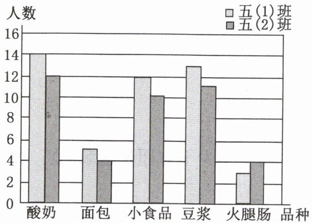 五(1)班喜欢喝豆浆的人数比五(2)班喜欢喝豆浆的人数多多少人?(答案不唯一)