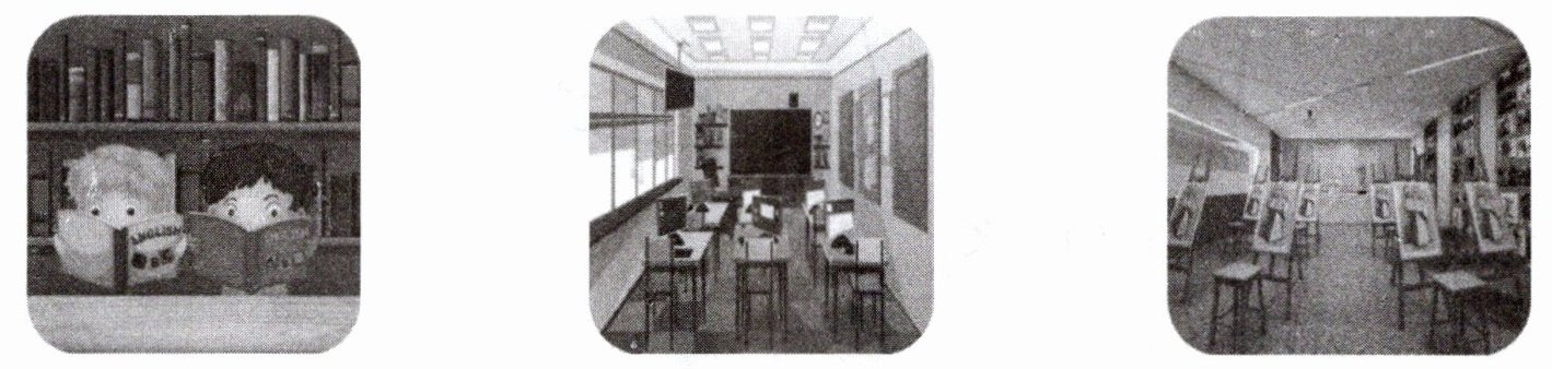 ) 2. The art room is next to the library.(