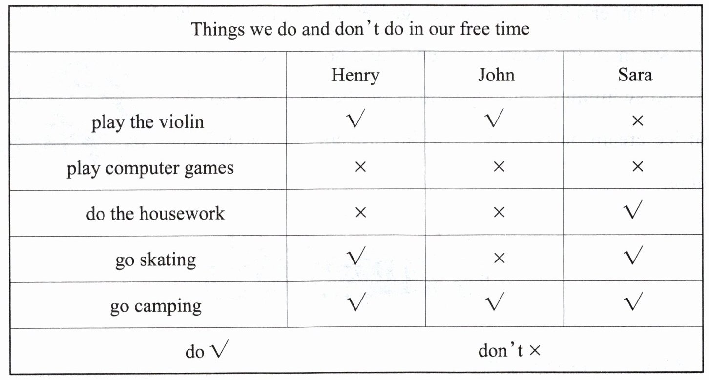 ) 3. Henry, John and Sara like going camping.二、根据自己的实际情况回答问题。