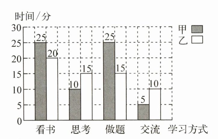 甲、乙两名同学每天在家学习的时间分配情况统计图