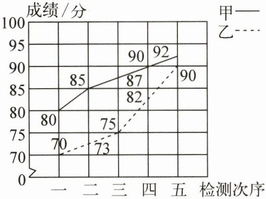 甲、乙两名同学阶段检测的成绩情况统计图