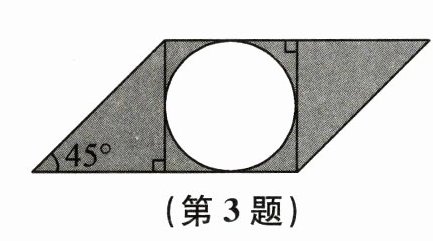 3. 小红学习了圆的知识后,在课后实践中,尝试在下图平行四边形中画一个最大的圆。第一步:从两个顶点向对边作垂线,画出正方形;第二步:在正方形中用圆规画出一个最大的圆。已知圆规两脚间的距离是2厘米,根据图中所给数据,计算出平行四边形中涂色部分的面积是(