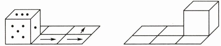2. 一个正方体相对的面上的点数分别是1和2、3和4、5和6。游戏规则:在方格棋盘上沿棱按照箭头方向翻动正方体,每次不能后退。开始时正方体如下左图那样摆放,最后翻动到如下右图所示的位置,此时正方体朝上的点数是(