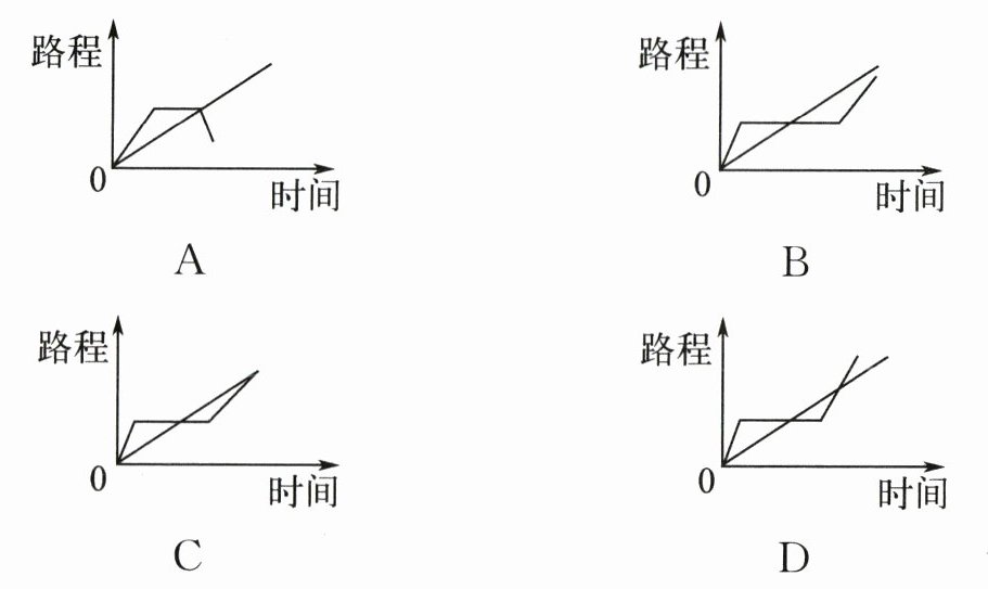 5. 爸爸和小明一同从家里去书店,爸爸骑车,小明步行。爸爸因事在途中停留了一段时间,办完事之后继续向书店骑行,结果爸爸比小明先到达书店。下面图(