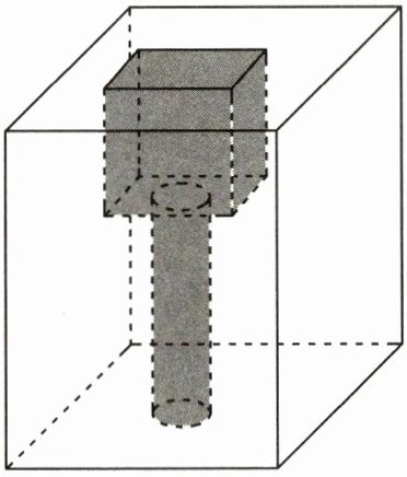 4. 如图所示是一个长、宽、高分别是6厘米、6厘米、10厘米的长方体木料,在它上面的正中向下挖一个棱长为4厘米的正方体小洞,接着在小洞的底面正中向下再挖一个底面直径为2厘米、深达木料底部的圆柱形小孔,制成一种零件的模具。这个模具的表面积是多少平方厘米?(结果保留$\pi$)(8分)