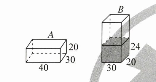 2. 如图,现有空的长方体容器A和水深24厘米的长方体容器B。(单位:厘米)
