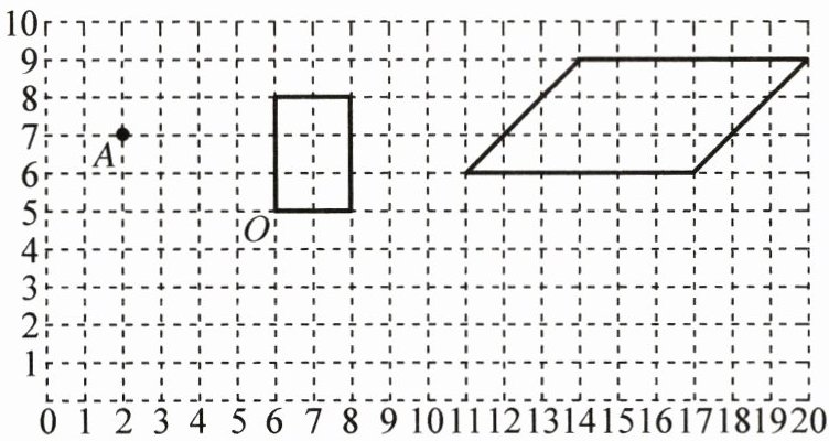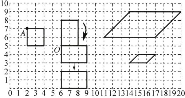 (3)将长方形绕点O顺时针旋转$90^{\circ }$后,再向下平移3格。(2分)