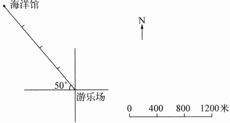 2. (1)海洋馆在游乐场( )偏( )( )°方向( )米处。(4分)