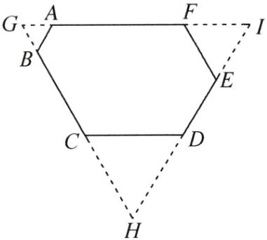 解析:如图,将六边形各边延长,使相交于点G、H、I,则三角形GHI是等边三角形,边长为1 + 3 + 3 = 7(厘米),进而求得EF与AF的长,即可得六边形的周长。