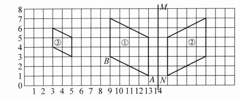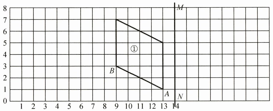 (2) 在方格图上再画出一个平行四边形(标记为②),使它与平行四边形①关于直线$MN$成轴对称。(1分)