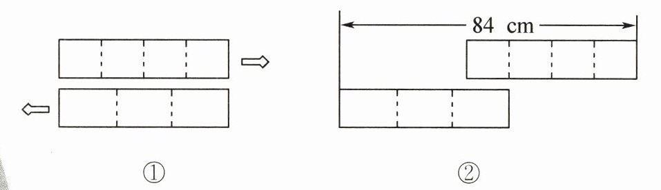 6. 有两个相同的长方形按图①放置,现在将这两个长方形同时向左右方向平移至如图②所示,每个长方形的长是(