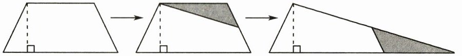 5. 下图是把梯形转化成三角形的过程。如果梯形的面积是54平方厘米,高是9厘米,那么转化后,三角形的底是(