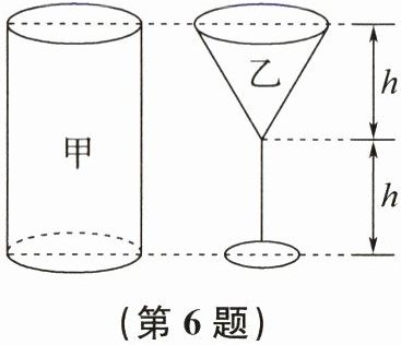 6. 一套酒具有甲、乙两个酒杯,它们的杯口直径相同(如图)。一瓶630毫升的饮料,恰好能倒满6套这样的酒具,甲酒杯的容积是(