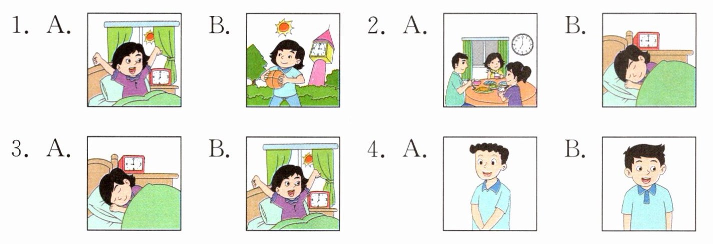 )4. A. A:Good evening. B:Good evening.B. A:Good night. B:Good night.