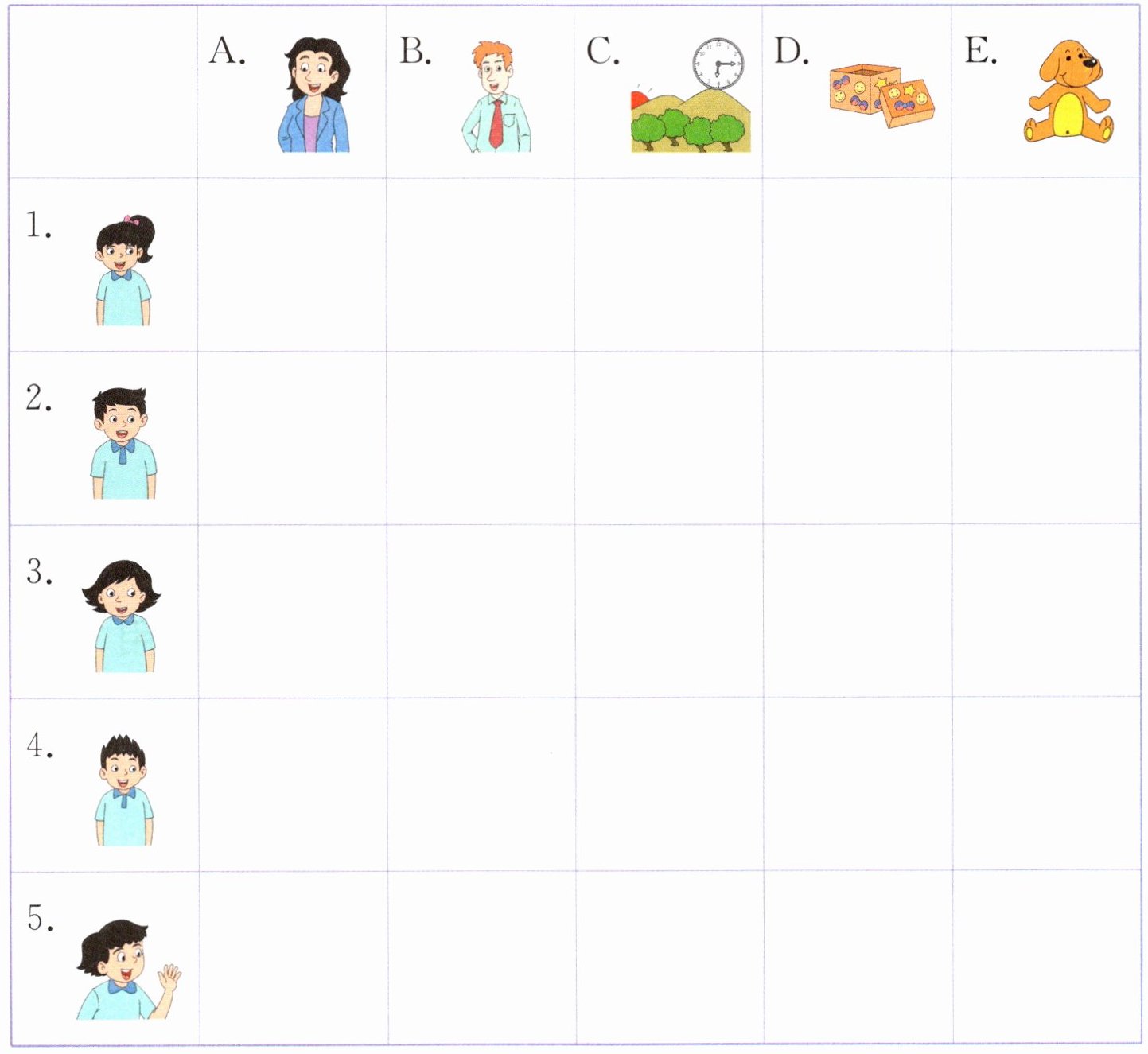四、听录音,在表格相应的位置画“√”。(听两遍)(30分)
