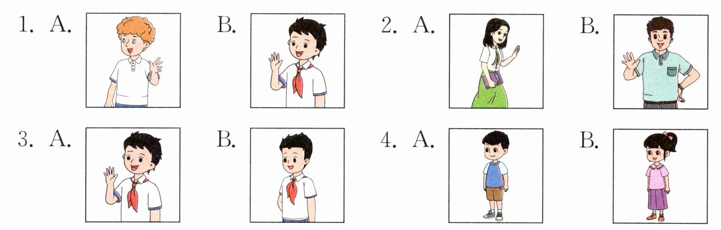 三、【情境题】新学期来了,三(1)班的小朋友们正在班会课上介绍自己呢!听录音,用数字给下列人物排序。(听两遍)