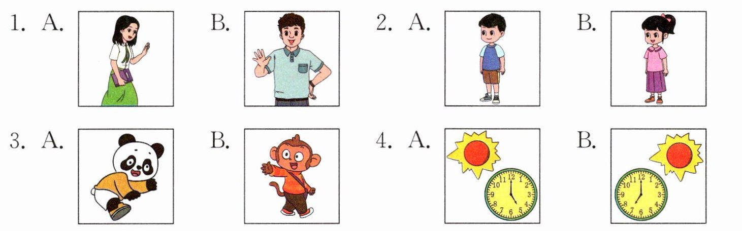 二、听录音,圈出与所听内容相符的图片。(听两遍)(12分)