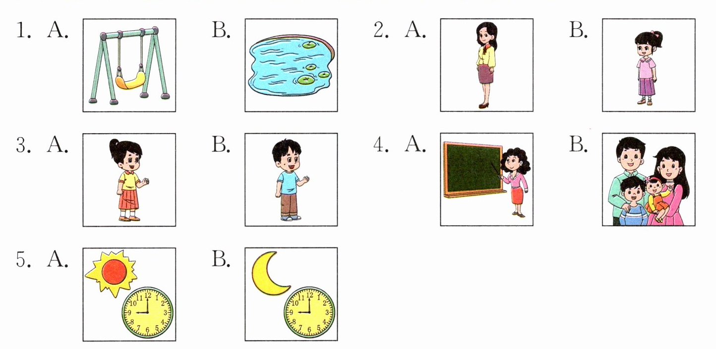 二、听录音,圈出与所听内容相符的图片。(听两遍)(15分)