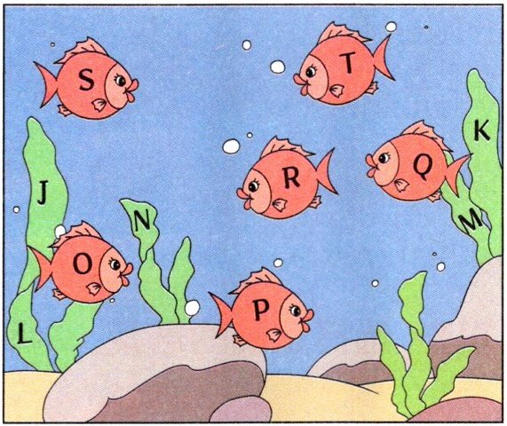 一、【新颖题】这里有一群爱躲猫猫的字母,它们正藏在小鱼身上和水草里呢!听录音,圈出你所听到的字母。(听两遍)