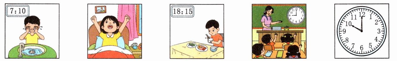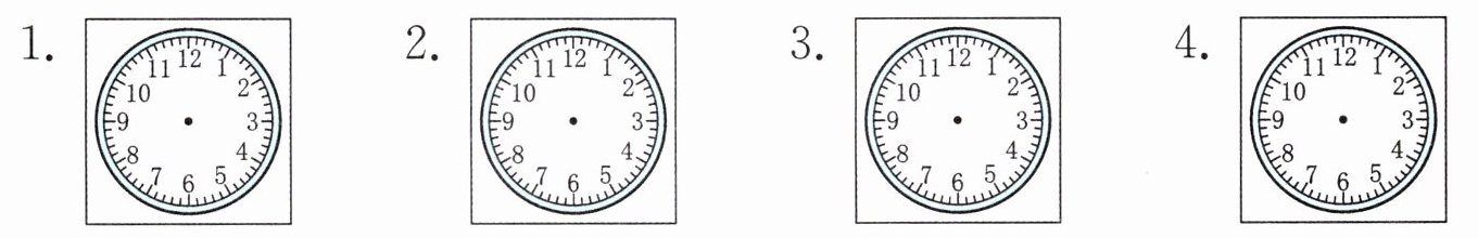 五、【新颖题】听录音,根据听到的先后顺序,给下列钟面画上时间。(听两遍)