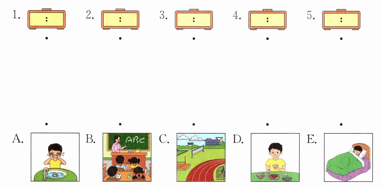 1. 10:00; B 2. 11:20; D 3. 7:10; A 4. 9:10; E 5. 3:15; C