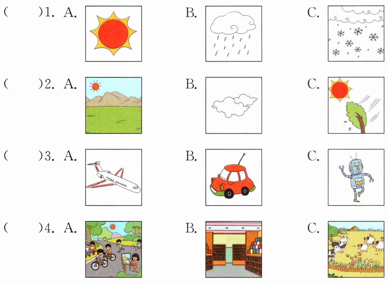 一、听录音,选出与所听内容相符的图片。(听两遍)(8 分)