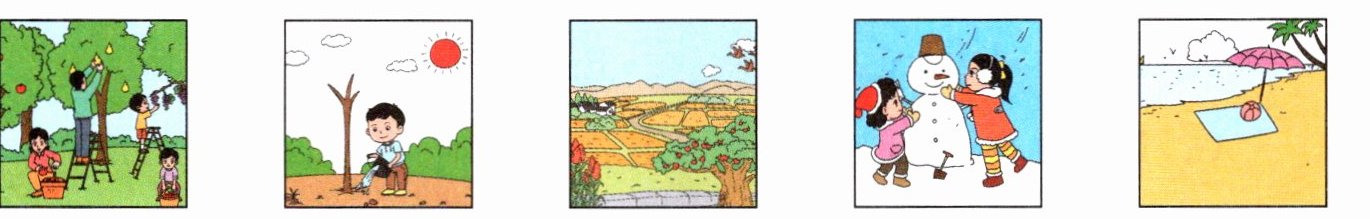 )3. 你告诉别人你们在秋天摘苹果,可以说:______(