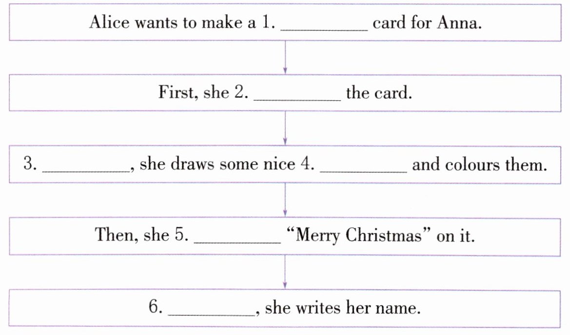 1. Christmas 2. folds 3. Next 4. things 5. writes 6. Finally