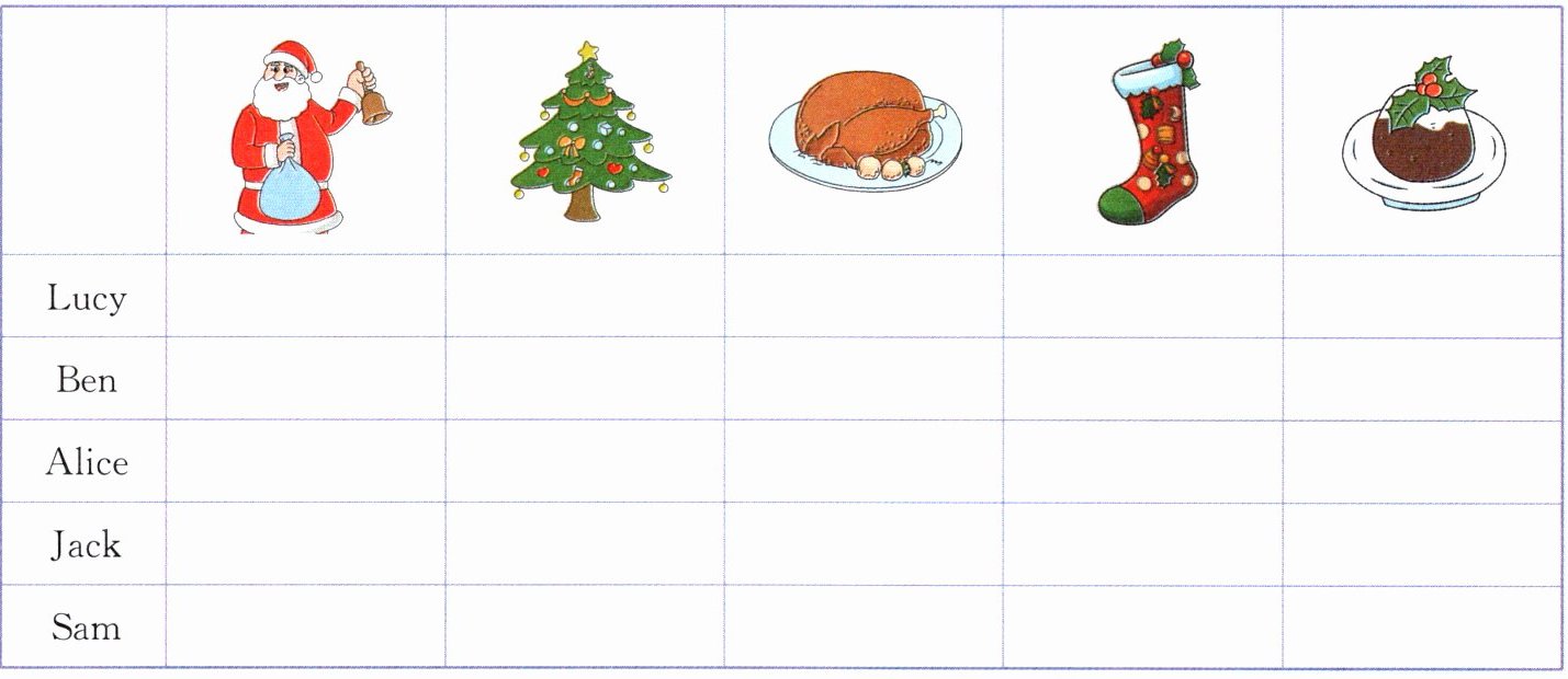 四、听录音,根据所听短文,在表格内相应的位置画“√”。(听两遍)(25 分)