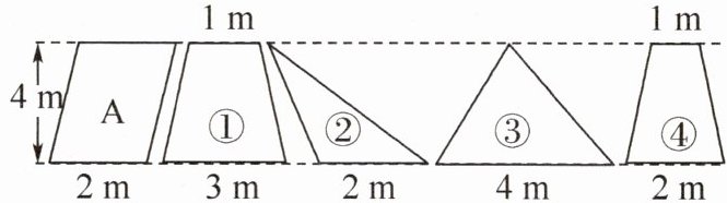 2. 四个完全相同的正方形拼成一个长方形(如图),比较图中阴影三角形的面积,(
