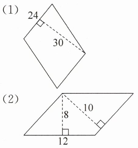 4. 一个平行四边形相邻两条边的长度分别是 15 厘米和 20 厘米,其中一条边上的高是 18 厘米。这个平行四边形的面积是多少平方厘米?