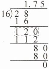 (4) 右面计算$28÷16$的竖式中,120 表示 120 个(