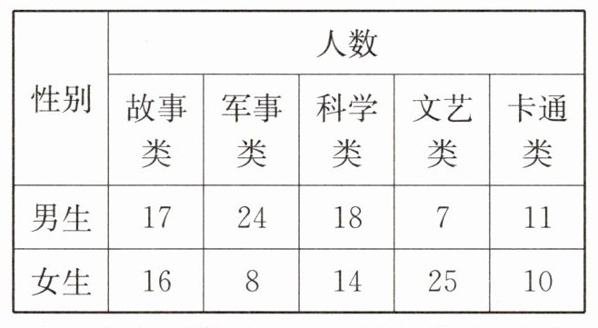 3. 下面是五(1)班男、女生喜欢各类图书情况的统计表。