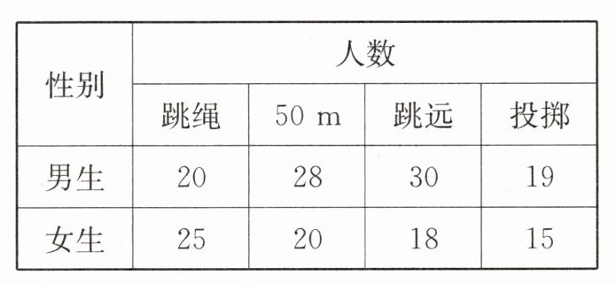 4. 下面是五(3)班同学几项体育项目成绩达标人数统计表。这个班至少有(