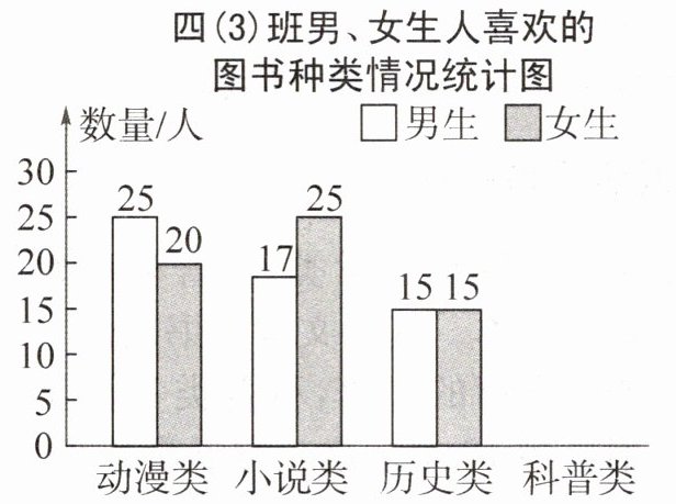 (2) 这个班同学普遍喜欢阅读( )类图书,女生喜欢( )类图书的人数最多。