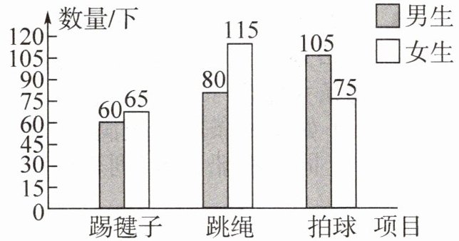 5. 下面是五(1)班同学踢毽子、跳绳、拍球成绩统计图。