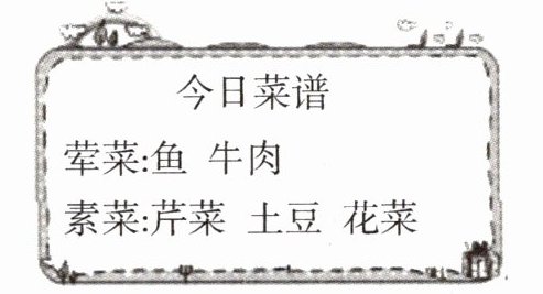2. 食堂午餐菜谱如下,如果每人一荤两素,有几种搭配方法? (先填表,再回答)