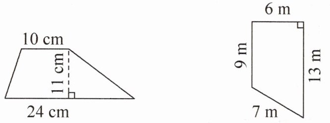 (10+24)×11÷2=187(平方厘米) (9+13)×6÷2=66(平方米)
