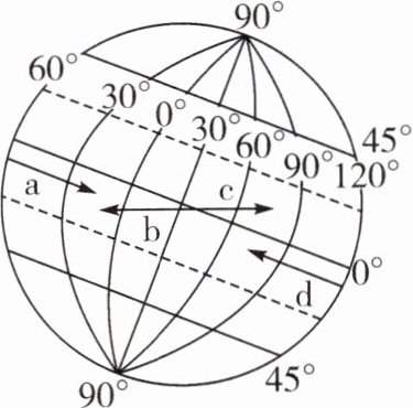 2 右图中的 a、b、c、d 四个箭头,表示地球自转方向的是( )