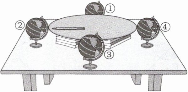 (2024·陕西西安模拟)地理课堂上,学生自制模型演示地球运动。椭圆形纸板代表地球公转轨道平面,铅笔代表太阳直射光线。演示时,手持地球仪沿椭圆形纸板边缘转动。读地球运动演示图,回答 7~9 题。