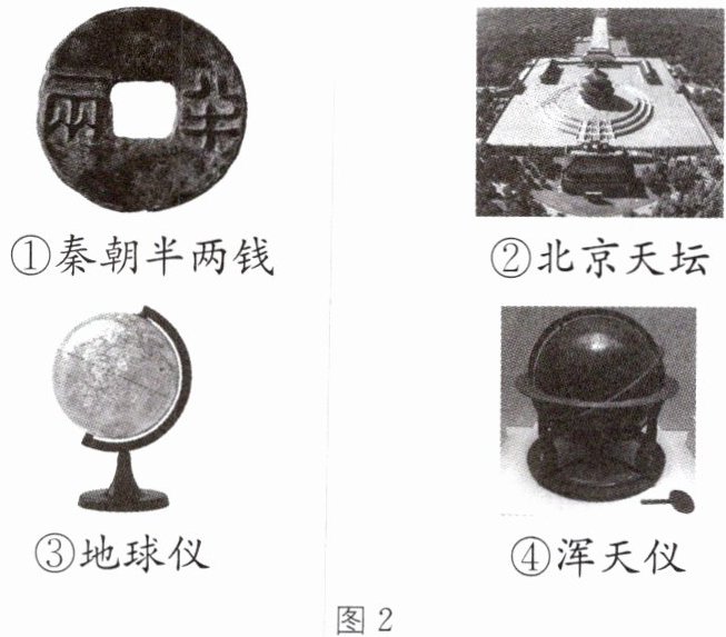 ①秦朝半两钱 ②北京天坛