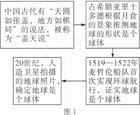 (2024·青岛中考)人类对地球形状的认识经历了漫长的过程。图1示意人类对地球形状的认识过程。据此回答6~8题。